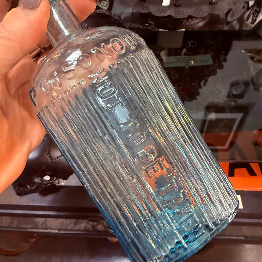 Antique Clear Blue Poisonous Bottle Oval 7”