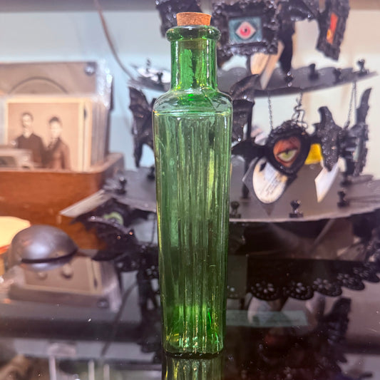 Antique Emerald Green Poison Bottle Hexagonal 6”