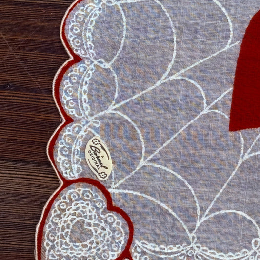 Antique Rare Spiderweb Rhinestone Valentine Heart Handkerchief