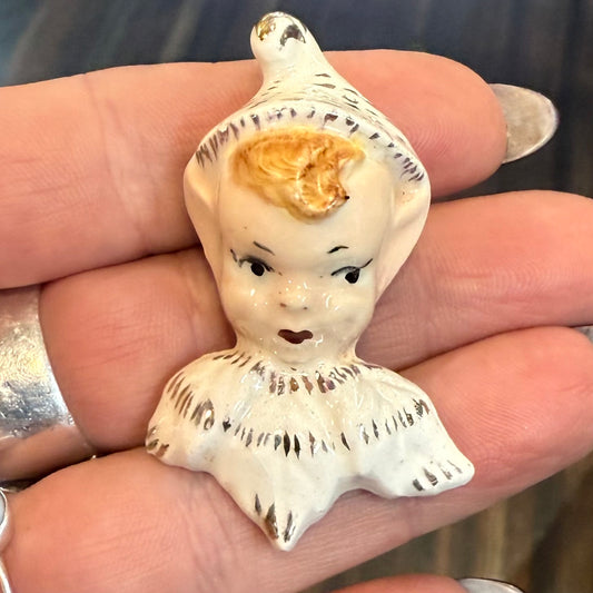 Antique Pixie Elf Hand Painted Porcelain Pin
