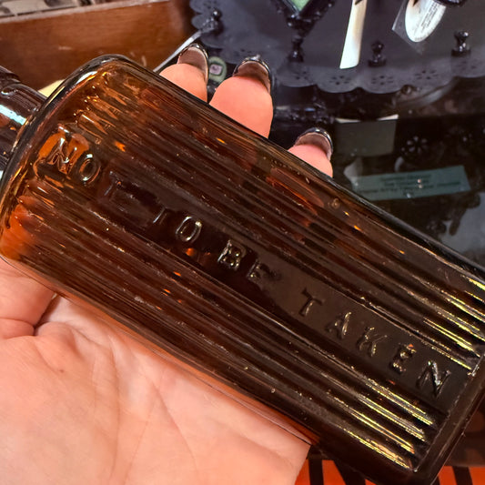 Antique Amber Poison Bottle Rectangular 6”