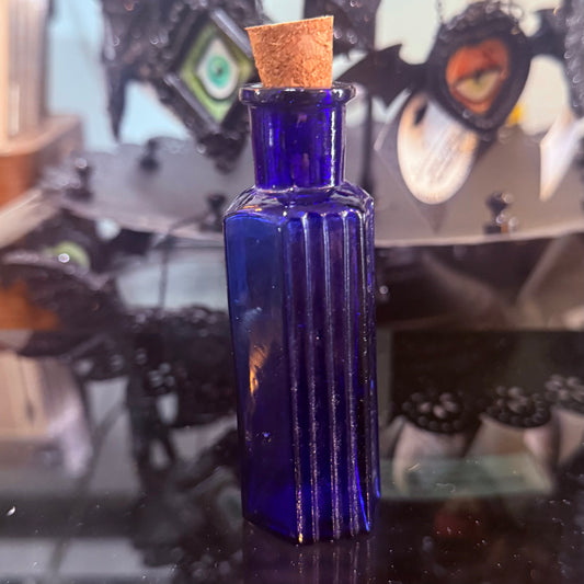 Antique Cobalt Poison Bottle Hexagonal 3”