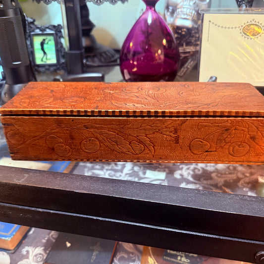 Antique Art Nouveau Pyrography Hinged Wooden Cherries Box