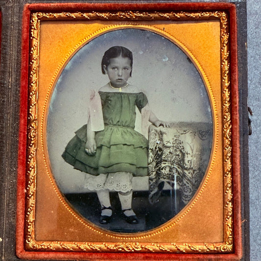 Victorian Framed Little Girl Tinted Daguerreotype in Case