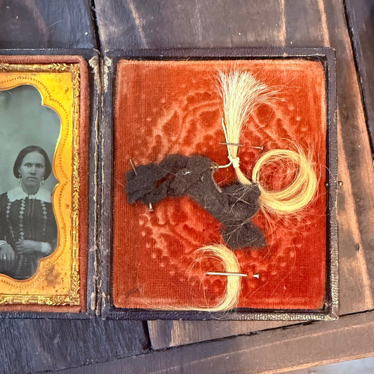 Victorian Memento Mori Tintype & Hair Velvet Case