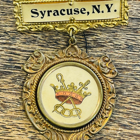 Victorian Oddfellows Celluloid Pin Crown NY
