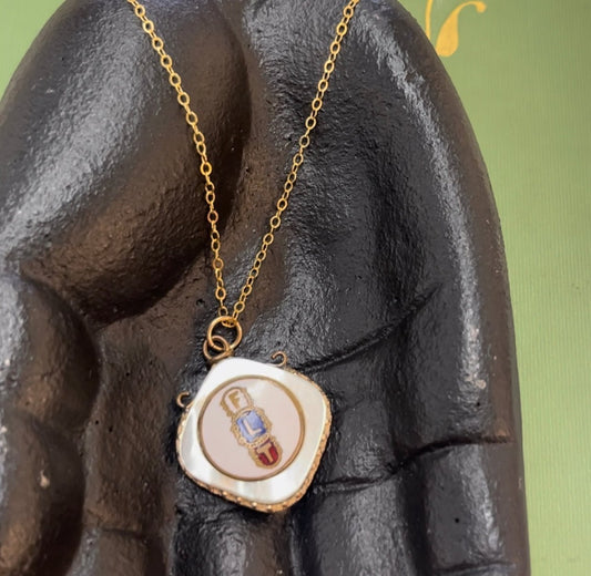 Antique Oddfellows Pendant MOP & Enamel