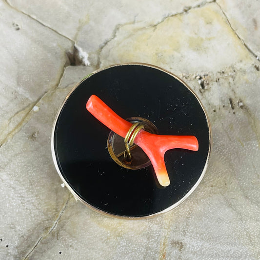 Victorian Onyx & Coral Gold Filled Brooch