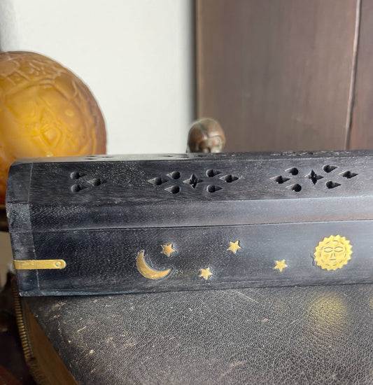 Moon, Sun & Stars Black Wood Incense Burner Box