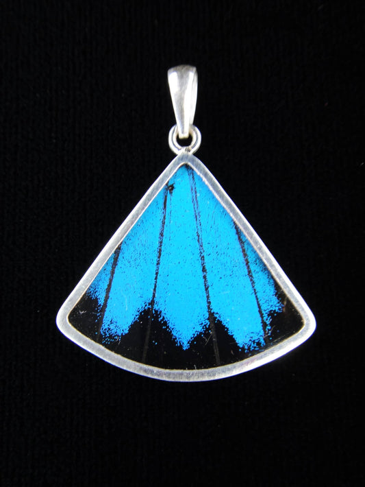 Blue & Black Butterfly Wing Fan Sterling Necklace