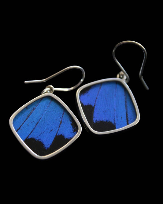 Blue & Black Butterfly Wing Sterling Diamond Earrings