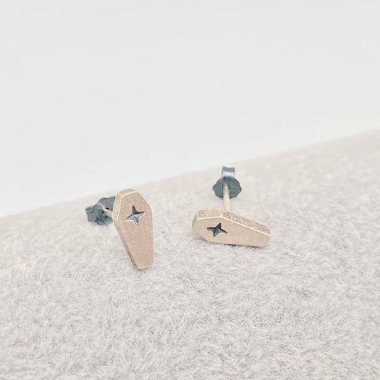 Sterling Silver Gothic Nail Puncture Heart Ear Studs