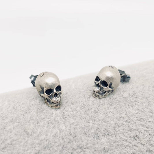 925 Sterling Silver Vintage Hummingbird Skull Ear Studs