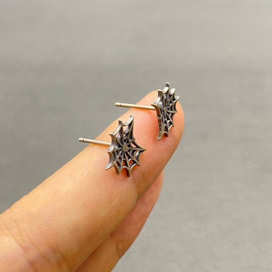 Sterling Silver Memento Mori Winged Skull Gothic Stud Earrings