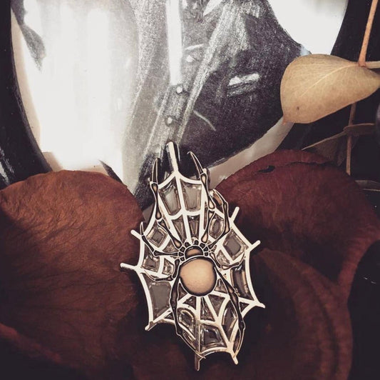 Mini { Spinderella } Pyrite & Clear Quartz Spider Necklace