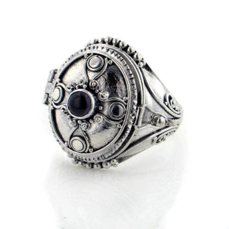 Gothic Oval Poison Ring Sterling Silver & Onyx, Garnet or Moonstone