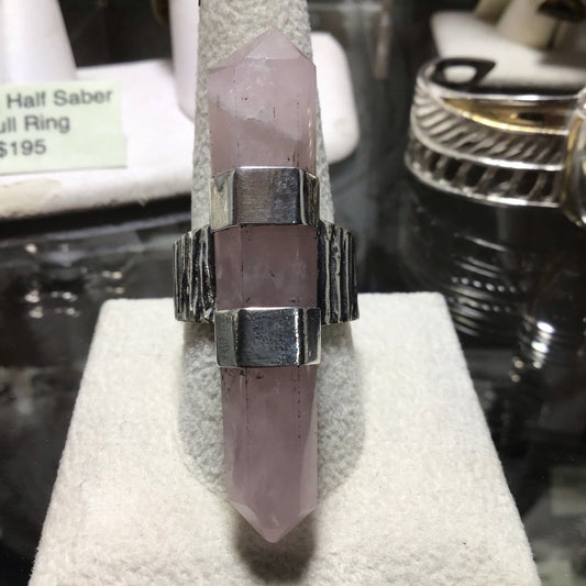 Double Terminated Rose Quartz Sterling Double Banded Ring