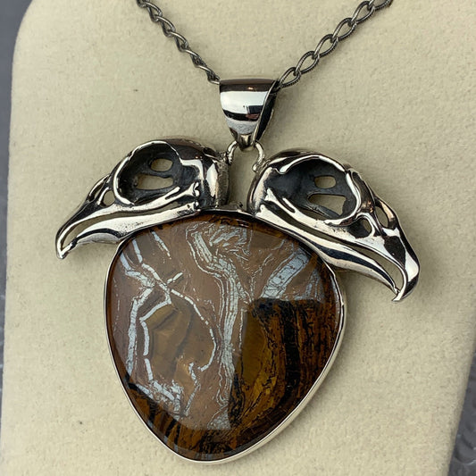 Double Vulture Skull Sterling Tigers Iron Necklace