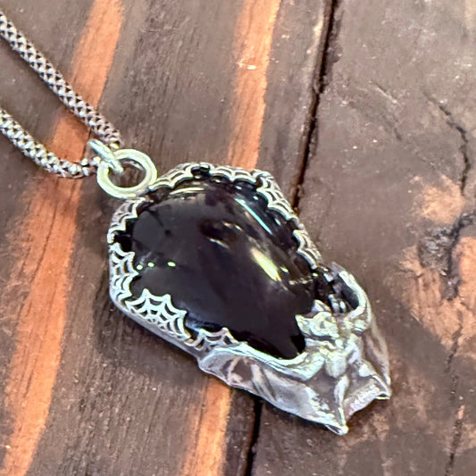 Sterling Vampire Bat Obsidian Coffin Spiderweb Necklace Gothic Victorian