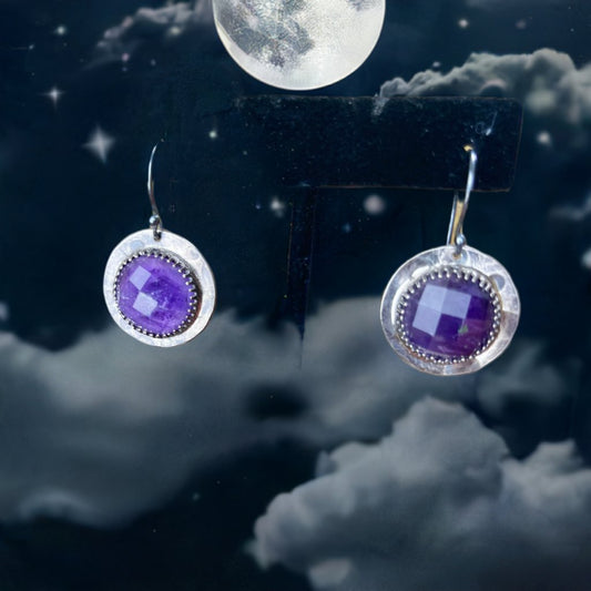 Amethyst Faceted Full Moon Sterling Amulet Earrings