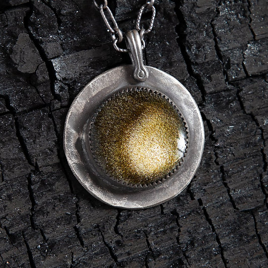 Gold Sheen Obsidian Full Moon Sterling Amulet Necklace