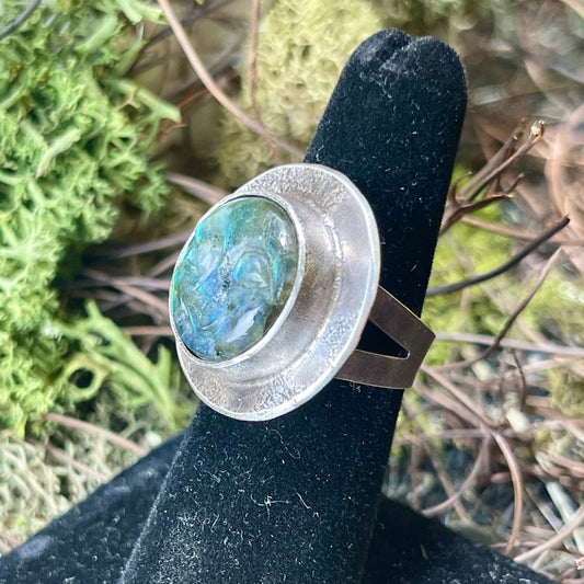 Moon Face Labradorite Full Moon Sterling Amulet Ring