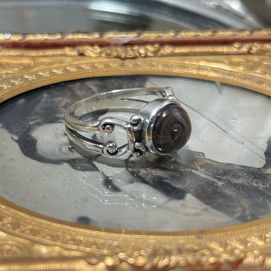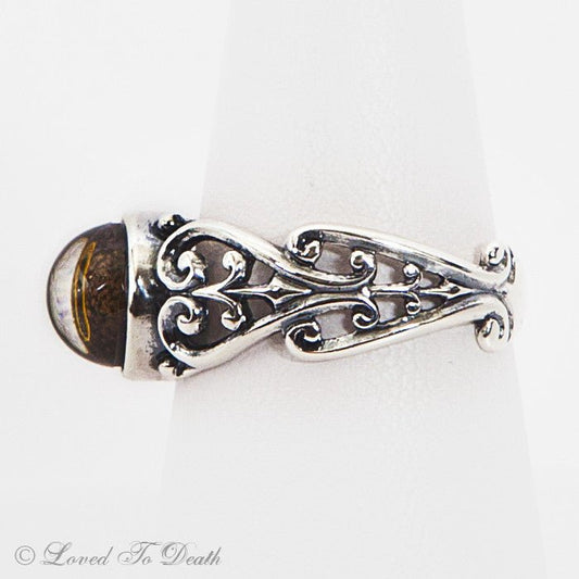 Raven Eye Sterling Silver Scroll Filigree Ring