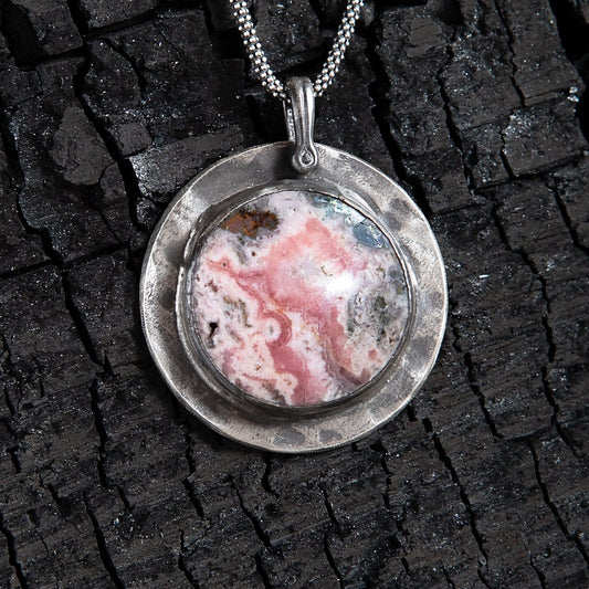 Rhodochrosite Full Moon Sterling Amulet Necklace