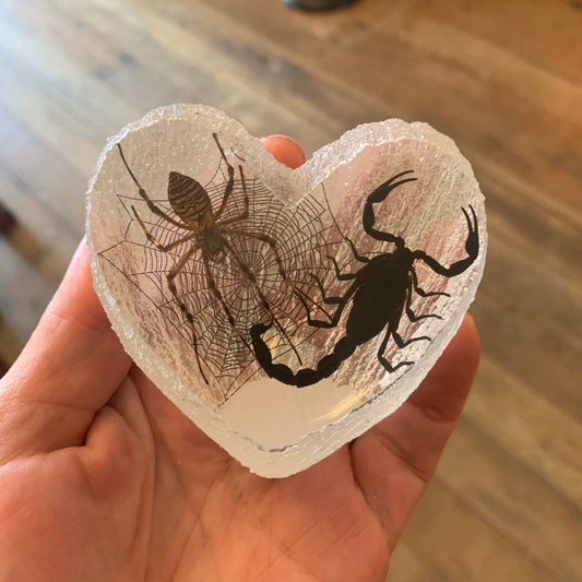 Scorpion Spider Lovers Specimen in Lucite Heart