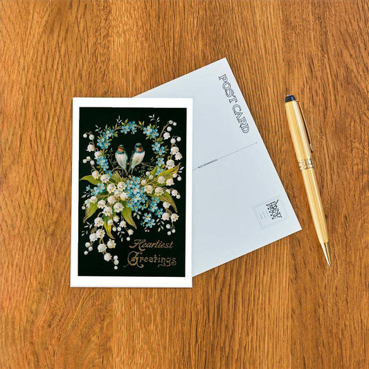 Postcard Heartiest Greetings, Vintage Bouquet IO-292