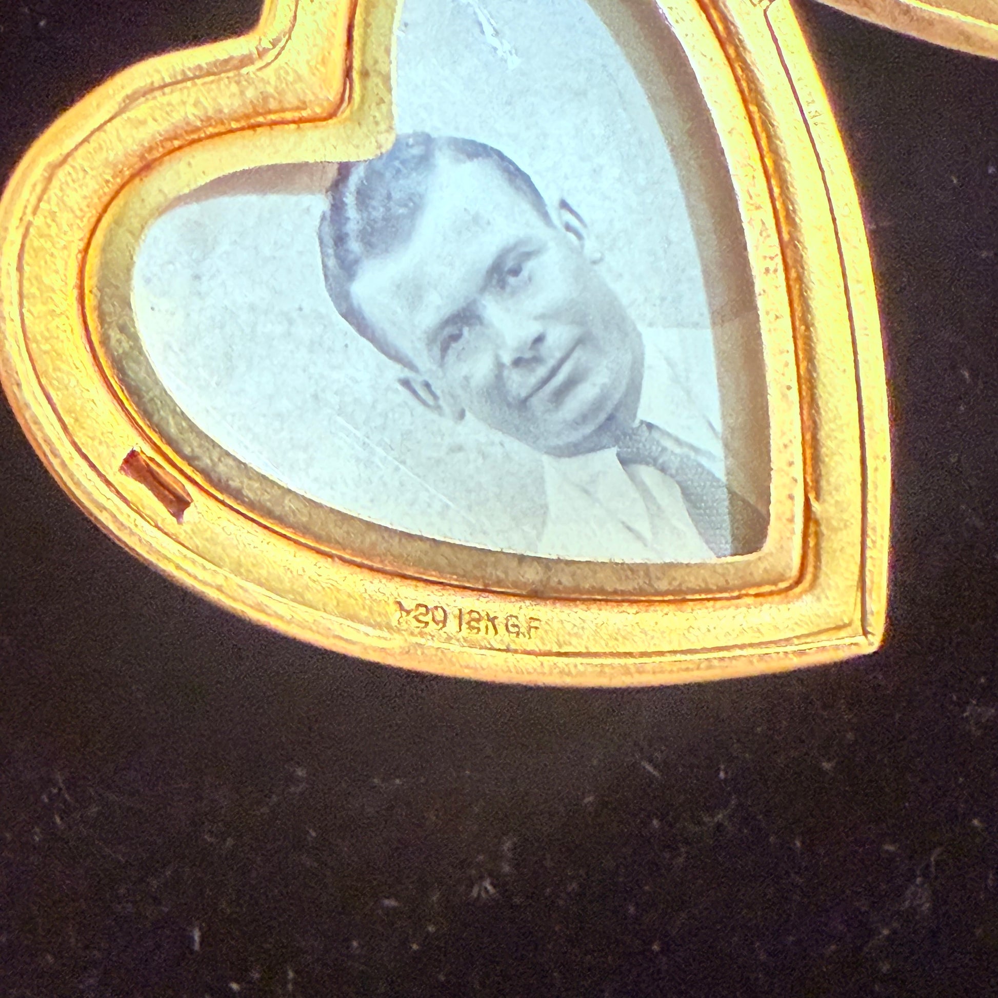 Beautiful antique gold filled heart locket, measures just over 1”. SWeetheart black and white photos inside, marked 12k gold filled.