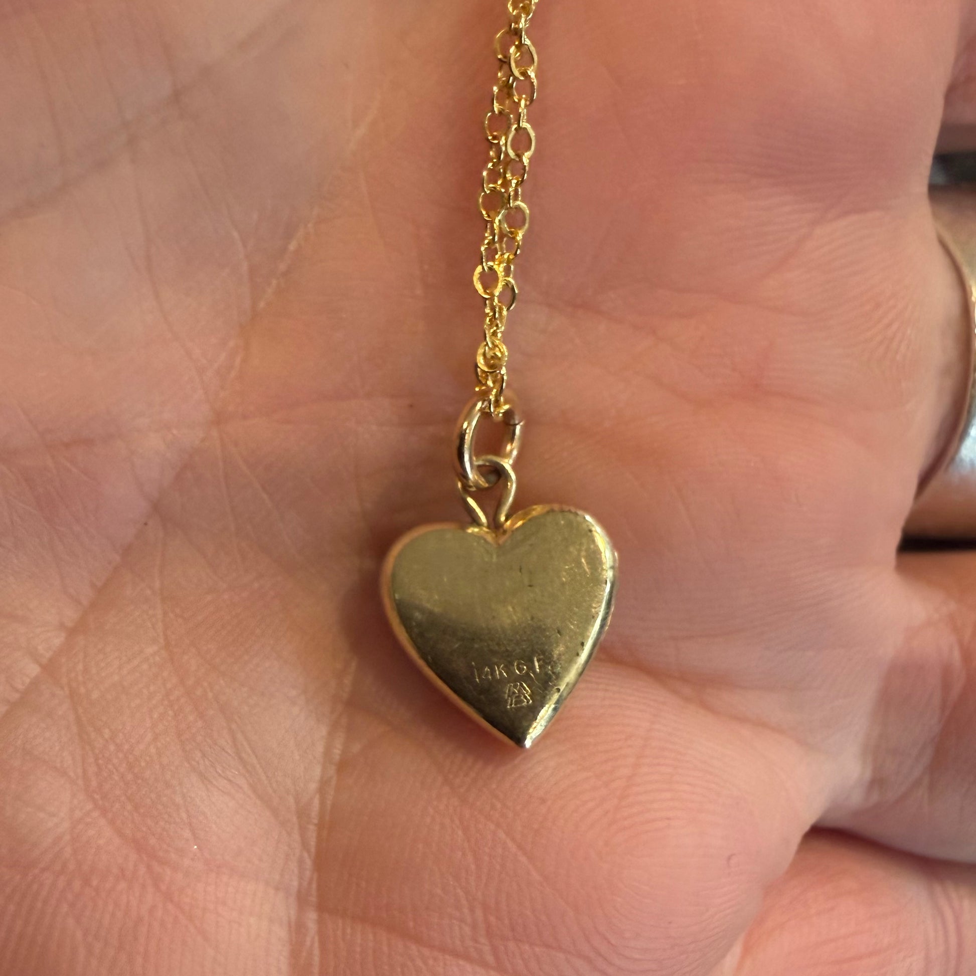 Beautiful antique mini gold filled heart locket. Made by and marked 14k gf. Chain is 18” gold filled.