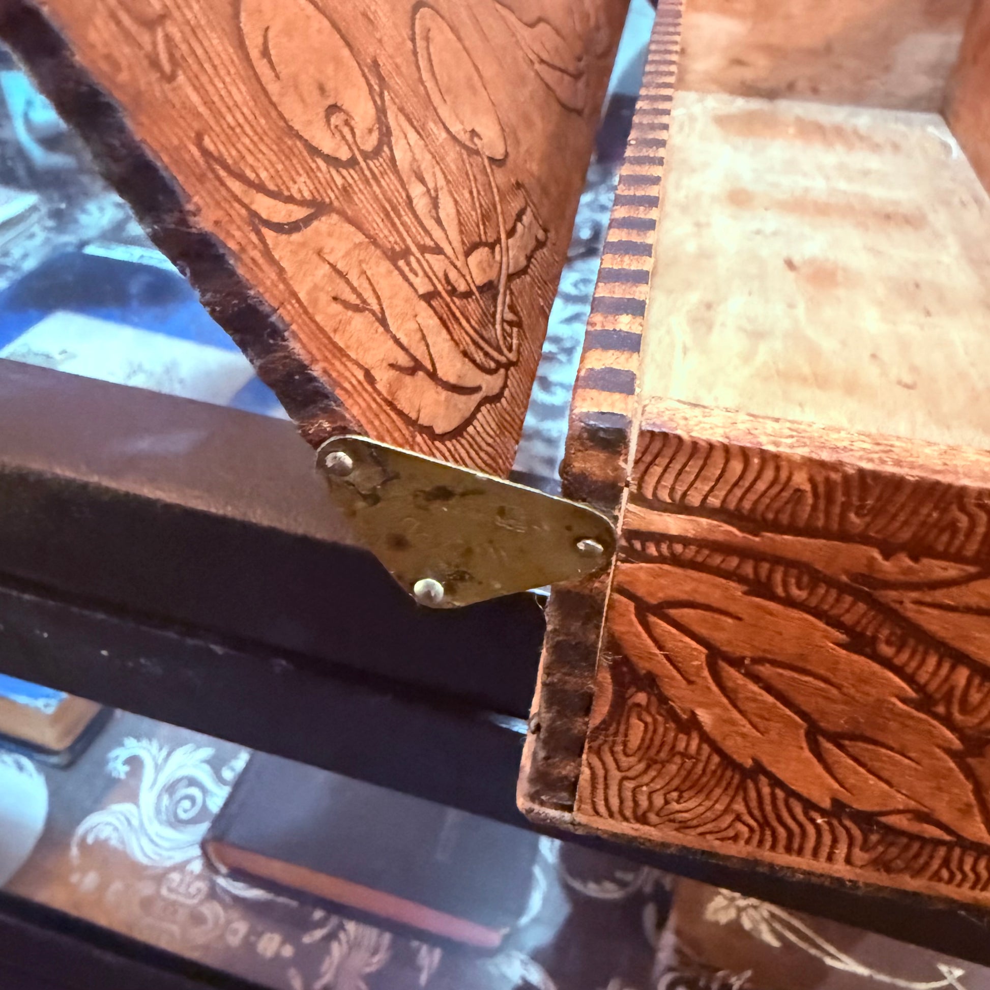 Antique Art Nouveau Pyrography Hinged Wooden Cherries Box
