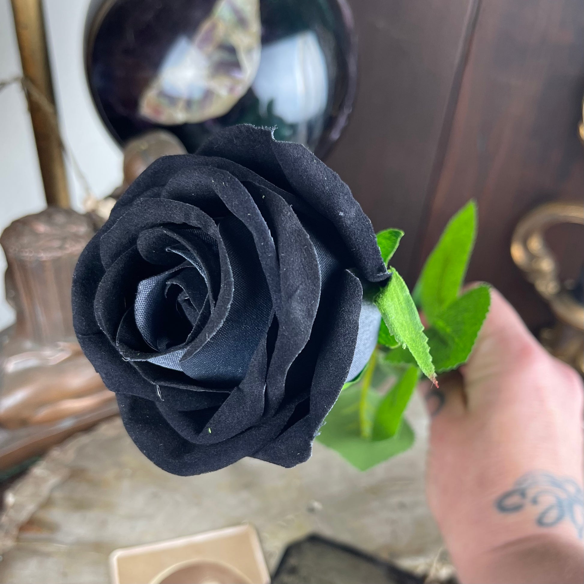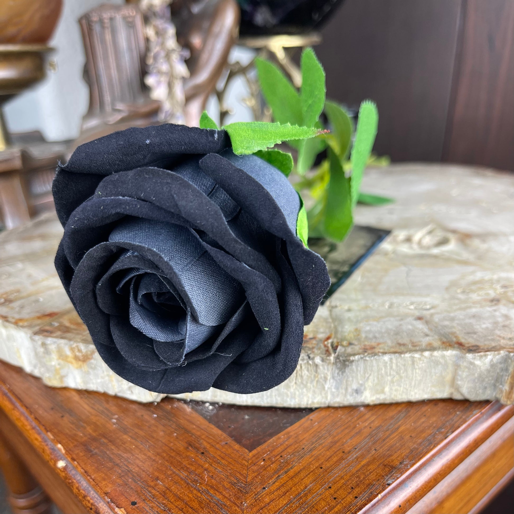 These artificial long stem black velvet roses are top quality, will look great anywhere you put them! Measures just over 20” long with flexible stem.