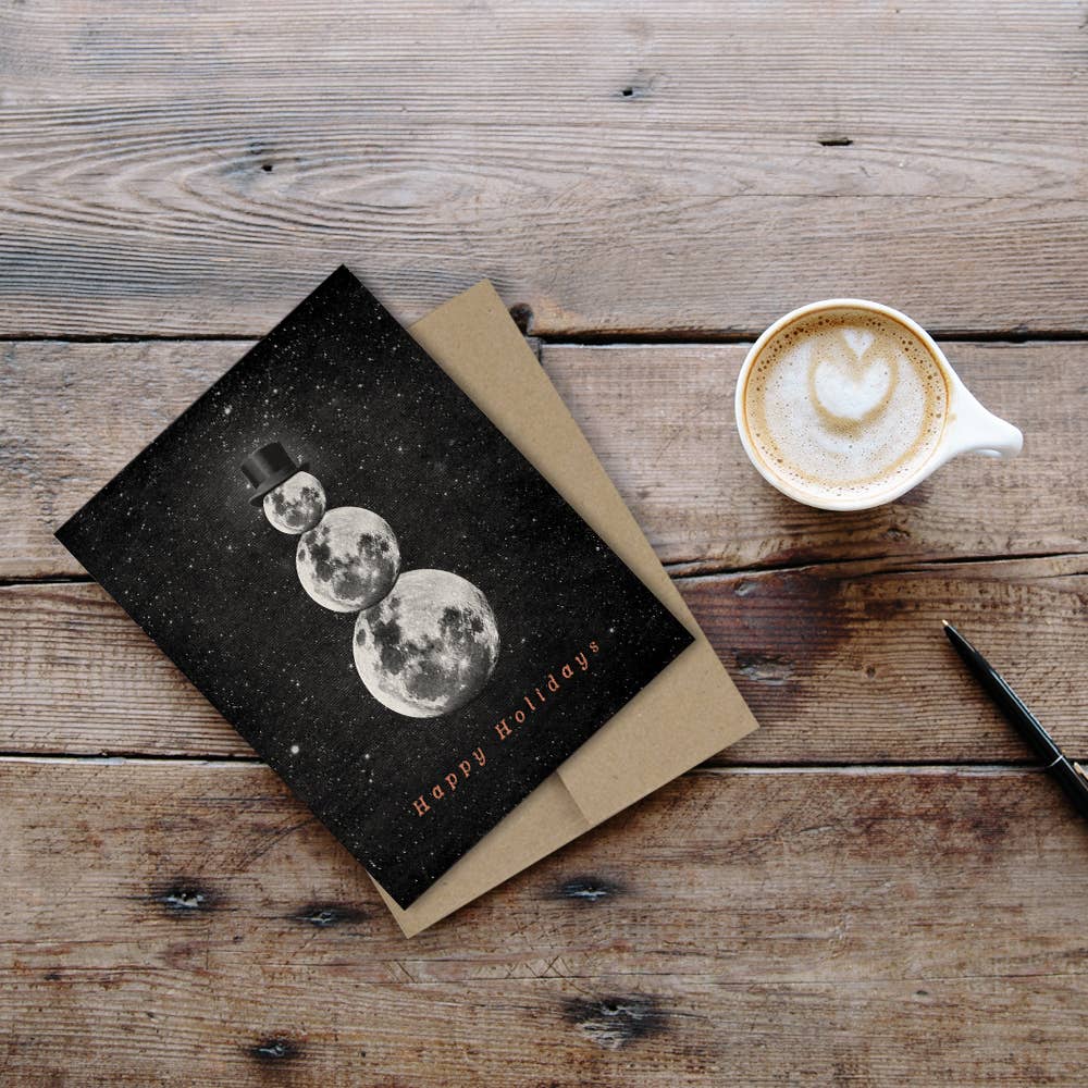 Happy Holidays Moon Snowman Card