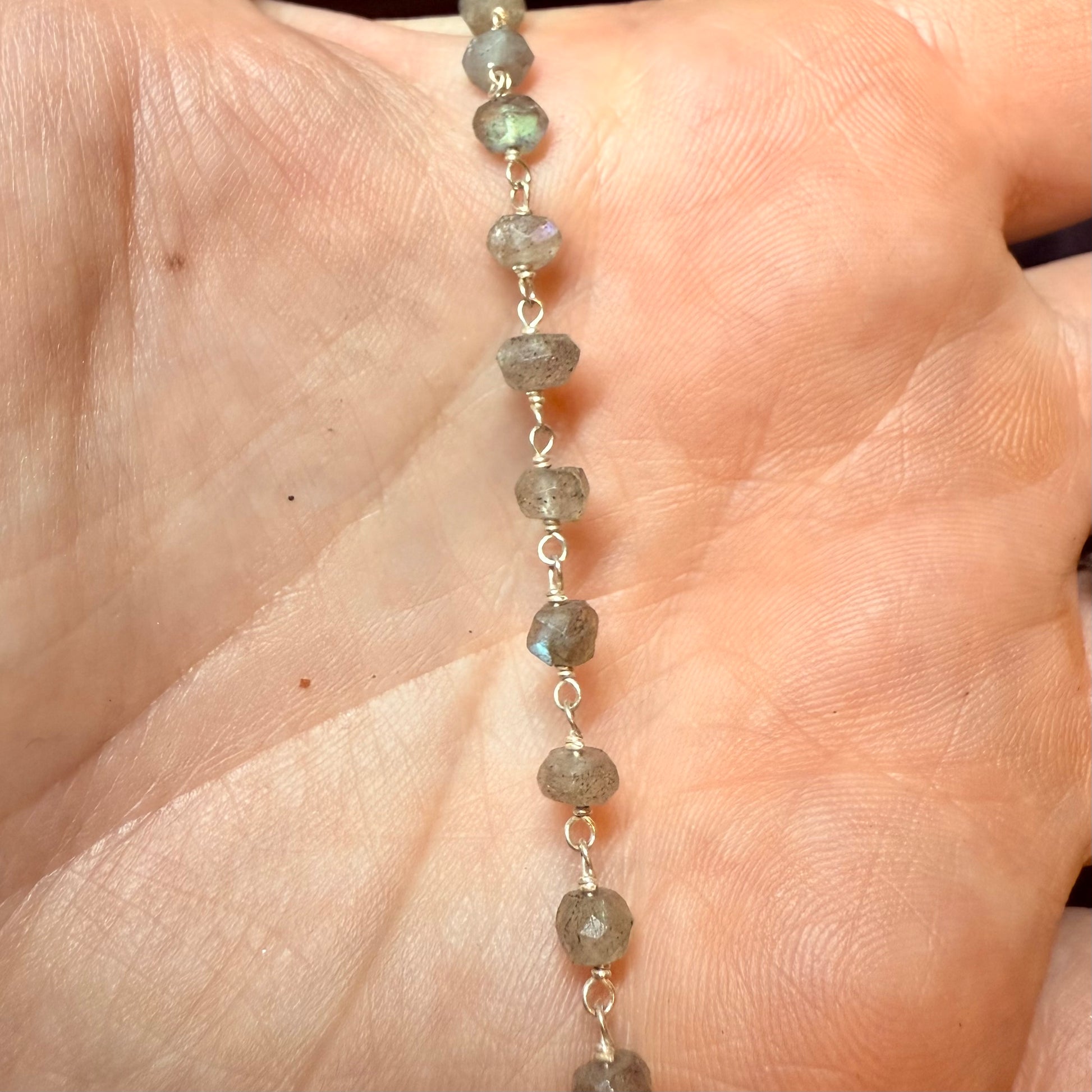 The pendant hangs from an 18” sterling silver chain accented with Labradorite stones and finished with a lobster clasp. The reverse is adorned with the Loved To Death signature garnet blood drop.